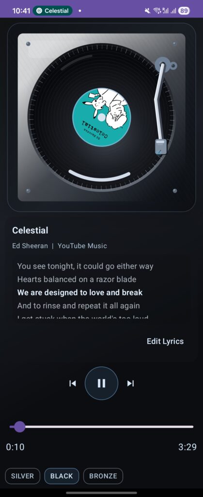 I built an Android app that reads Spotify/YouTube Music playback sessions and lets users control play/pause/seek by moving a virtual tonearm like a real turntable.\